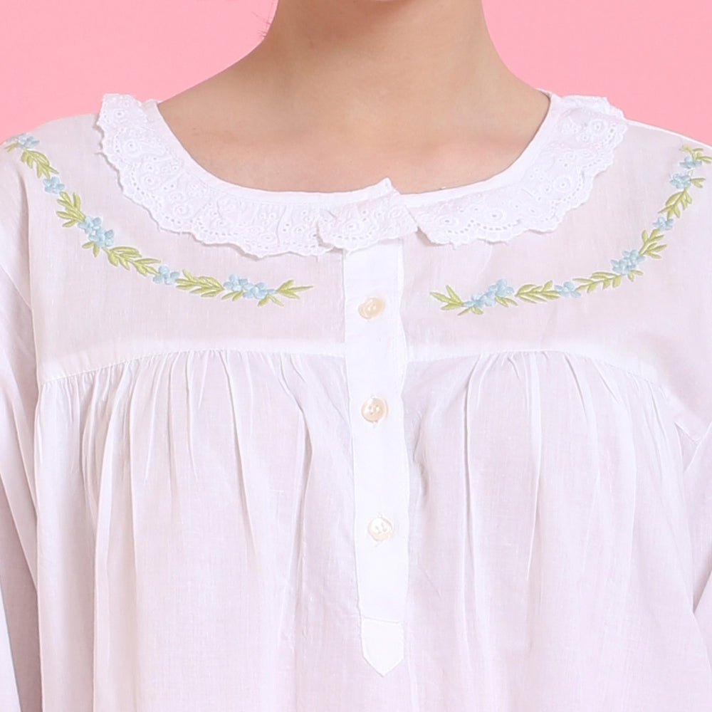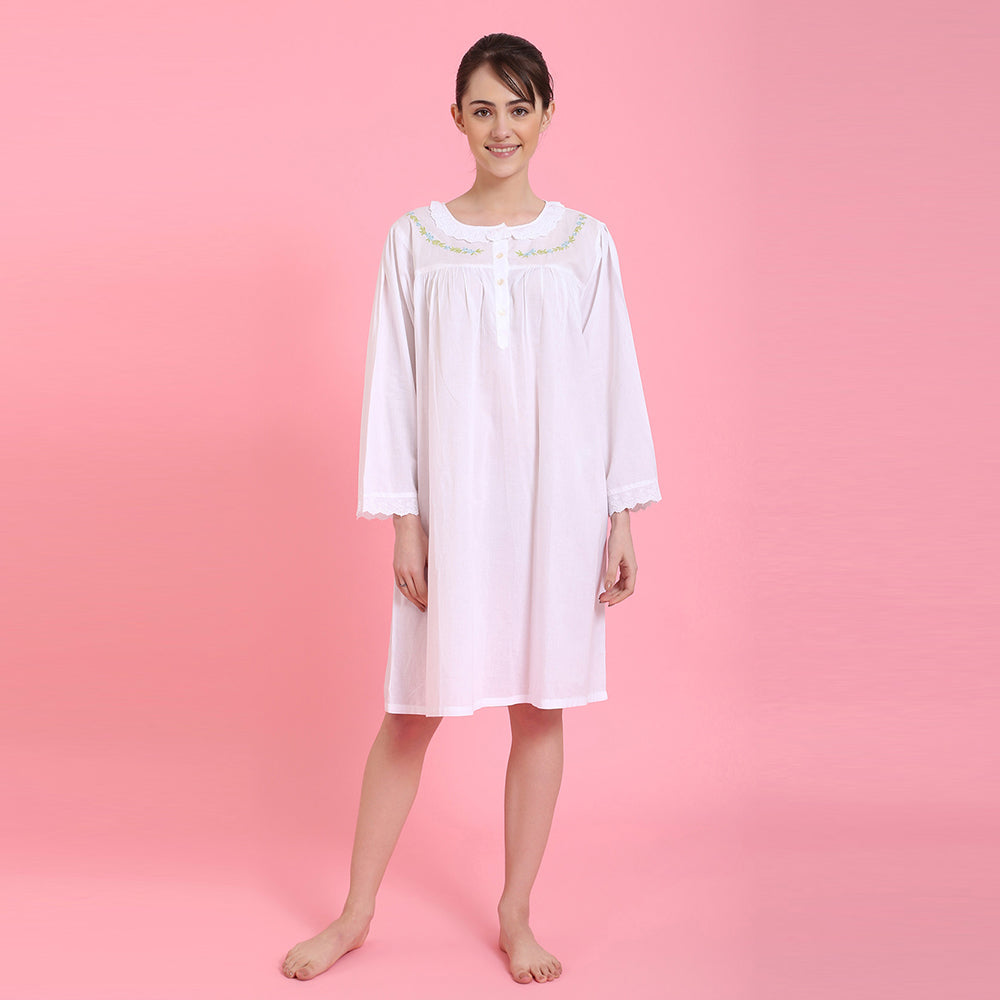 Soft and delicate embroideries, beautiful laces and mother of pearl buttons are some of the details incorporated in each style. All our sleepwear is made with 100% cotton Cambric fabric. Each piece is pre-washed and pre-shrunk to give you a soft and comfortable fabric experience.
