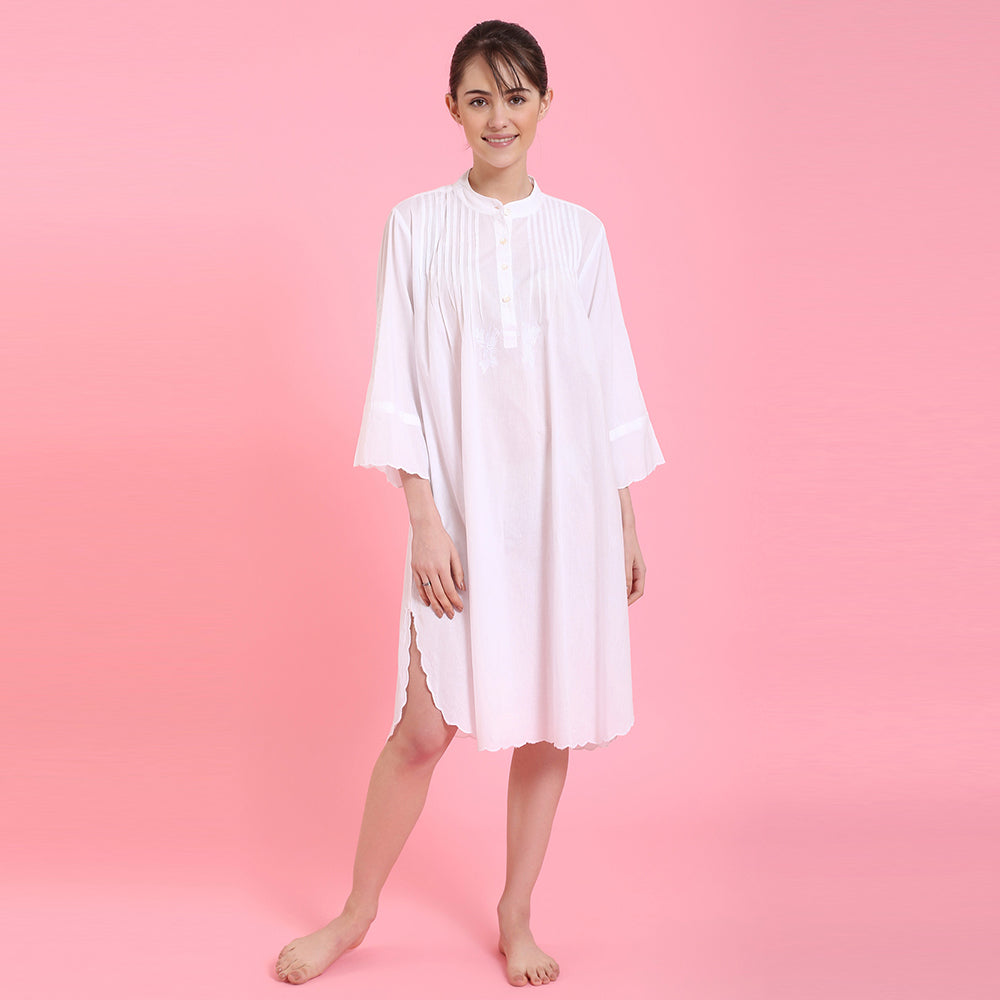 Soft and delicate embroideries, beautiful laces and mother of pearl buttons are some of the details incorporated in each style. All our sleepwear is made with 100% cotton Cambric fabric. Each piece is pre-washed and pre-shrunk to give you a soft and comfortable fabric experience.