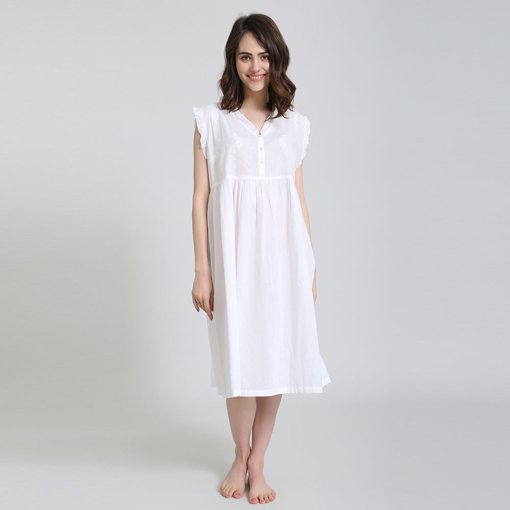Helen Sleeveless, White nightgown.